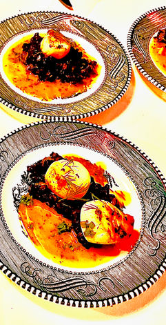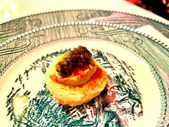 Chef John Paul and his team put together a host of favorites. We sat down with the hosts, took out a sharpie and a big piece of butcher paper, and came up with 13 separate and eclectic dishes, some family favorites and others from the Captain's Room signature repertoire of epicurean dishes. The evening started with a champagne toast. We prepared a beautiful Peruvian-style ceviche featuring scallops, tiger shrimp, and fresh grouper. We offered a variety of beautiful salads, one with the ancient grain, Farro, and gorgeous winter blackberries. One of the stars of the show was the Captain's signature "million dollar deviled egg." This special version of the traditional appetizer begins with fresh organic eggs. We prepare a unique potato salad-style filling that includes miso and a few other secret ingredients. Each of these elevated deviled eggs gets a dollop of Beluga caviar and a generous slice of white truffle from Alba.